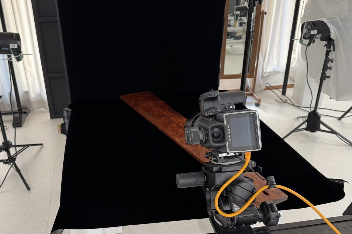 吹き漆による鈍い光沢感を正確に表現するのはハードルが高い撮影になりますが、一つ一つ作品の特徴を見極めながら丁寧に撮影を進めていきます。