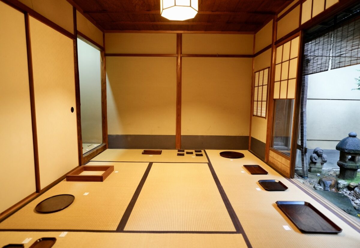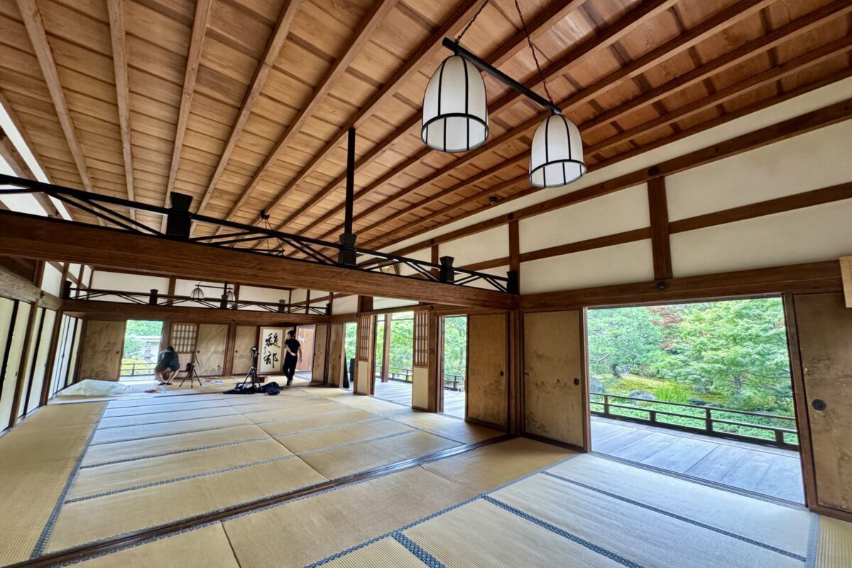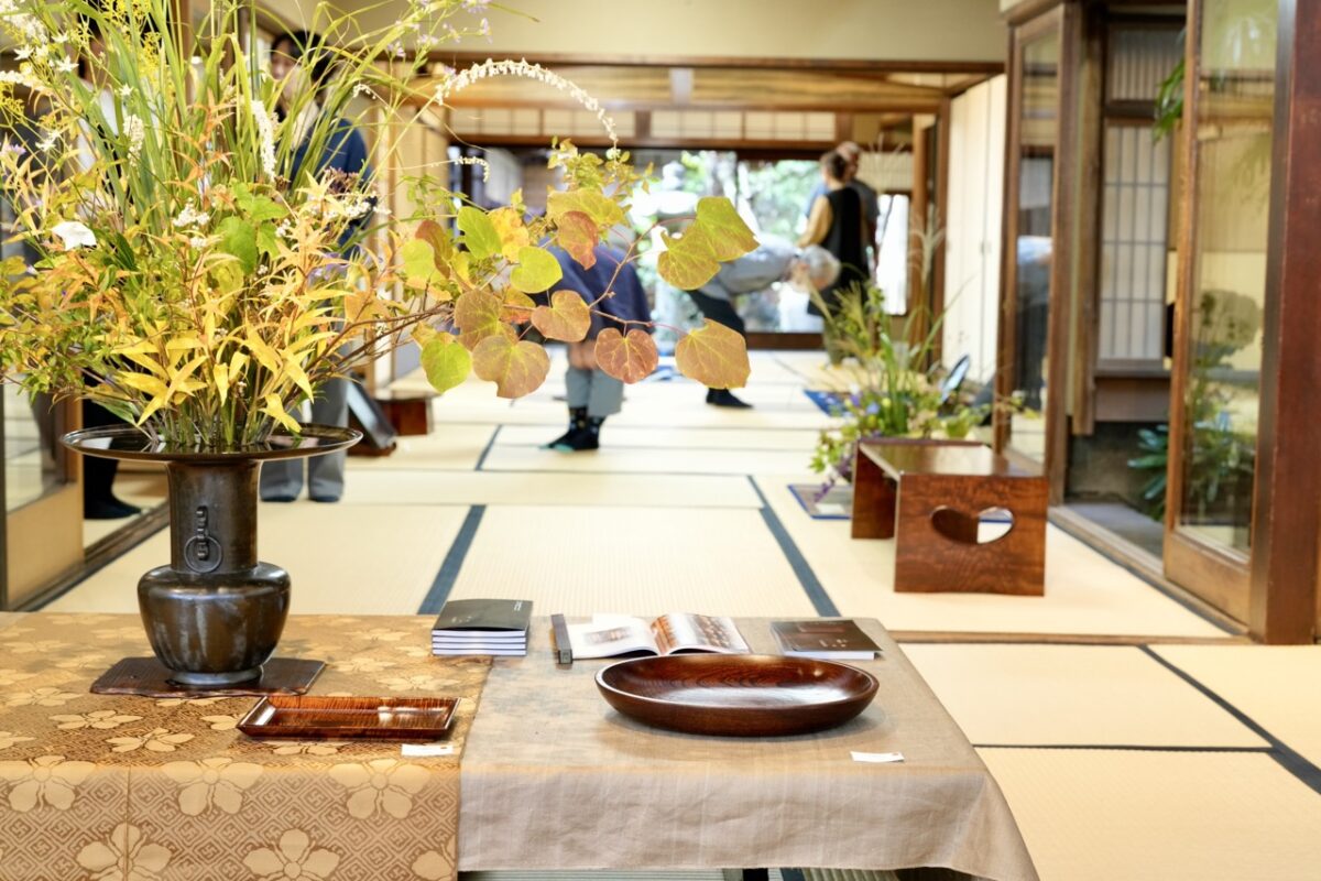 そして今回は作品を数点外に持ち出して、ロケ撮影も行いました。普段は京町家を背景に撮影することが多いのですが、山形さんは1997年に正伝永源院(建仁寺の塔頭)で個展を開催されているご縁もあり、境内を舞台に特別にロケ撮影させていただくことができました。素晴らしい庭園や歴史的価値のある襖絵などを背景に作品撮影を行い、冊子のイメージ写真に加えることができました。